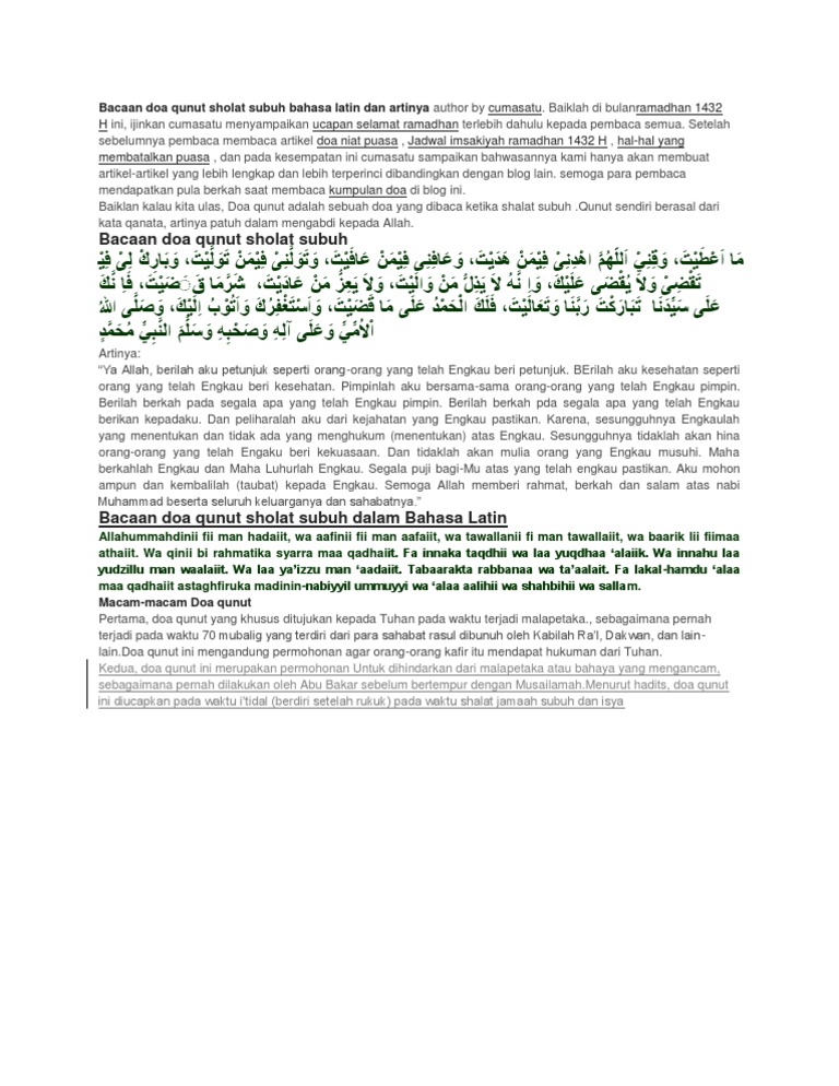 Doa Qunut Sholat Subuh Dan Qunut Nazilah Berbahasa Latin Dan