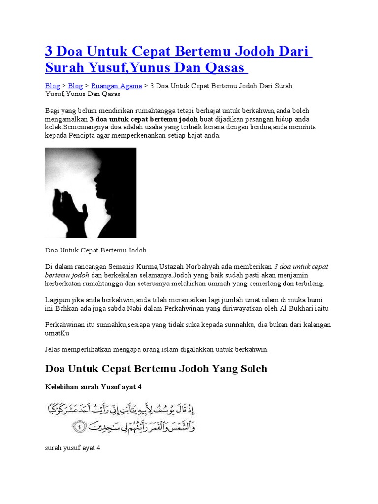 Doa Pendekat Jodoh Dari Surah Yusuf Azhan Co