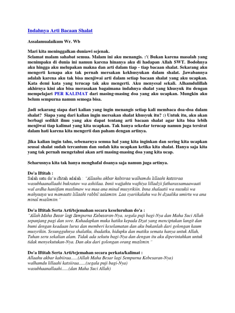 Terjemahan Bacaan Shalat Kata Per Pdf Pdf Document